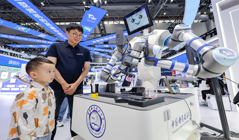 9月20日,在合肥濱湖國際會展中心,觀眾在參觀智能網(wǎng)聯(lián)新能源汽車展區(qū)展出的動力系統(tǒng)。 9月20日,在合肥濱湖國際會展中心,小朋友與中國科學(xué)技術(shù)大學(xué)展示的數(shù)據(jù)驅(qū)動的全流程機(jī)器化學(xué)家互動。 9月20日,在合肥駱崗公園全空間無人體...