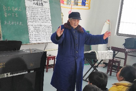 “遵守紀(jì)律人人要自覺,互相監(jiān)督切莫違反了,革命紀(jì)律條條要記清,人民戰(zhàn)士處處愛人民。”在定遠(yuǎn)縣朱灣小學(xué)的音樂教室里,一群孩子正在聚精會神地上音樂課,黑板中央掛著用毛筆抄寫的《三大紀(jì)律八項(xiàng)注意》的曲譜和歌詞。這是已經(jīng)91歲高齡的嚴(yán)明友老師的課堂,他對孩子們說道:“我們今天學(xué)的不是一首普通的歌曲,它能教我們做人的道理。希望你們學(xué)會這首歌的同時(shí),也能繼承這種優(yōu)良的革命傳統(tǒng),做一個(gè)懂紀(jì)律、守規(guī)矩的有用之才。”在嚴(yán)老師的課堂里出現(xiàn)最多的就是革命歌曲,而這些鏗鏘有力的曲調(diào)也總能讓他回憶起過去的軍旅時(shí)光。