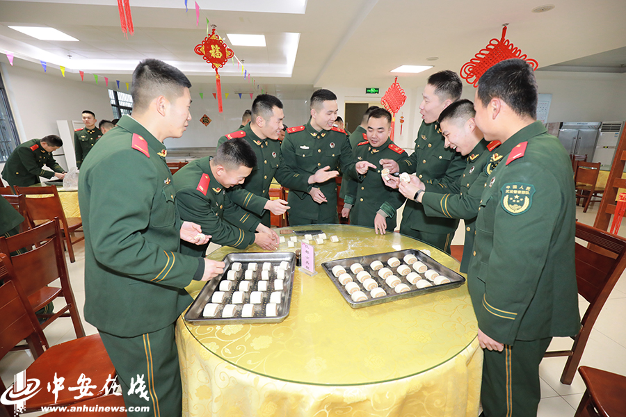 武警安徽省總隊合肥支隊十九中隊中隊長葛宏給新戰士夾湯圓。