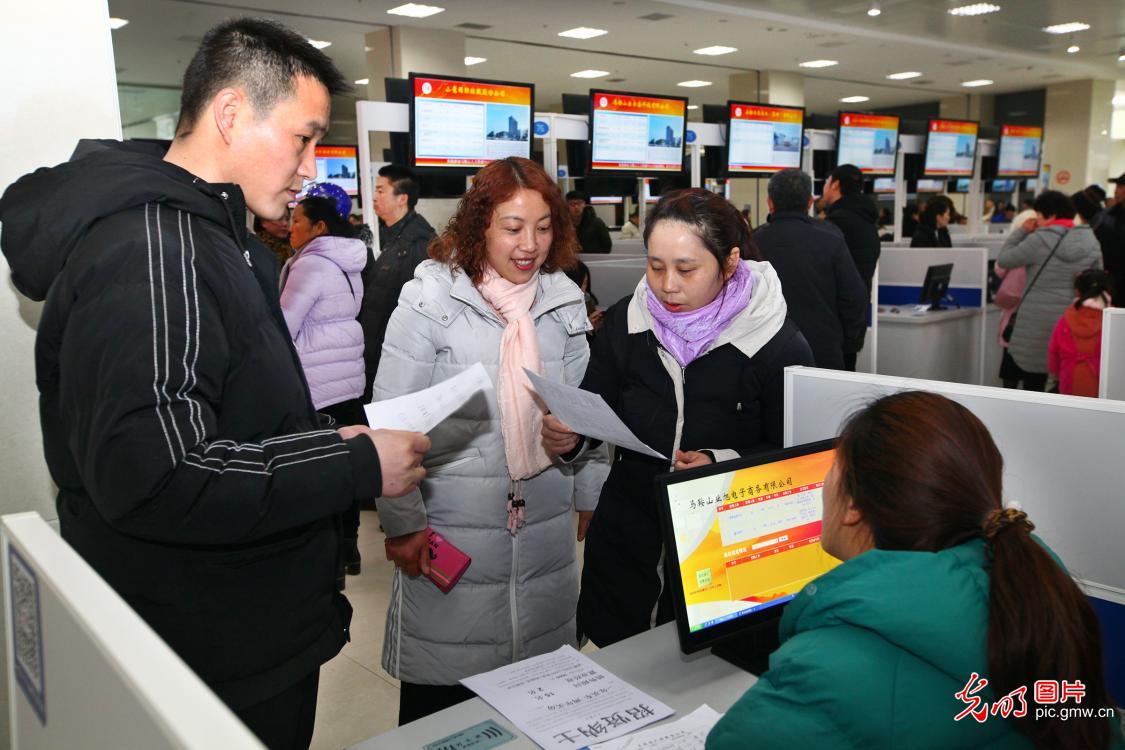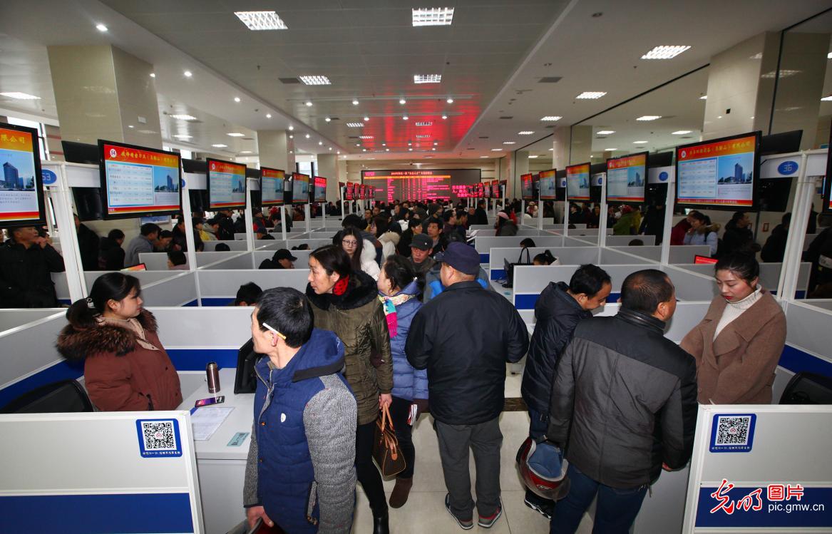2019年2月19日,安徽省馬鞍山市2019年"四送一服"臺企人才專場招聘會在該市人力資源中心市場如火如荼地進行。招聘會現(xiàn)場人頭涌動,場面火爆。(王文生攝/光明圖片)