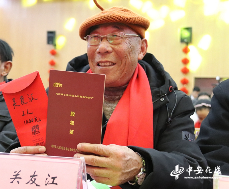 從“戶戶包田”到“人人持股”,中國農村改革第一村的村民日子越過越紅火!1月28日,小崗村舉行集體資產股份合作社分紅大會,10位大包干帶頭人和村民代表手拿《股權證》,領到了520元集體經濟收益股權分紅。