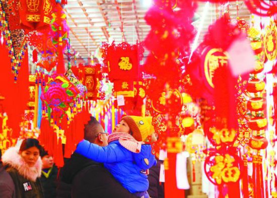 隨著春節的臨近,市民對于帶有喜慶色彩的掛飾和福字等物品的需求量也越來越大。1月30日,合肥市民在街頭選購春節掛飾。