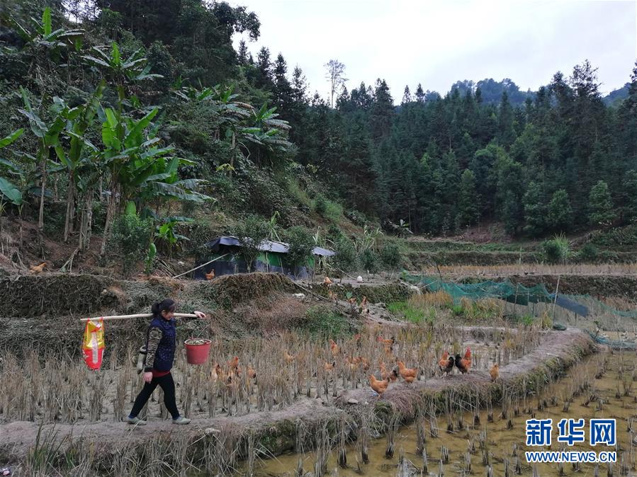 梁曉花清早去喂家禽(2018年12月23日攝)。新華社記者郭軼凡 攝