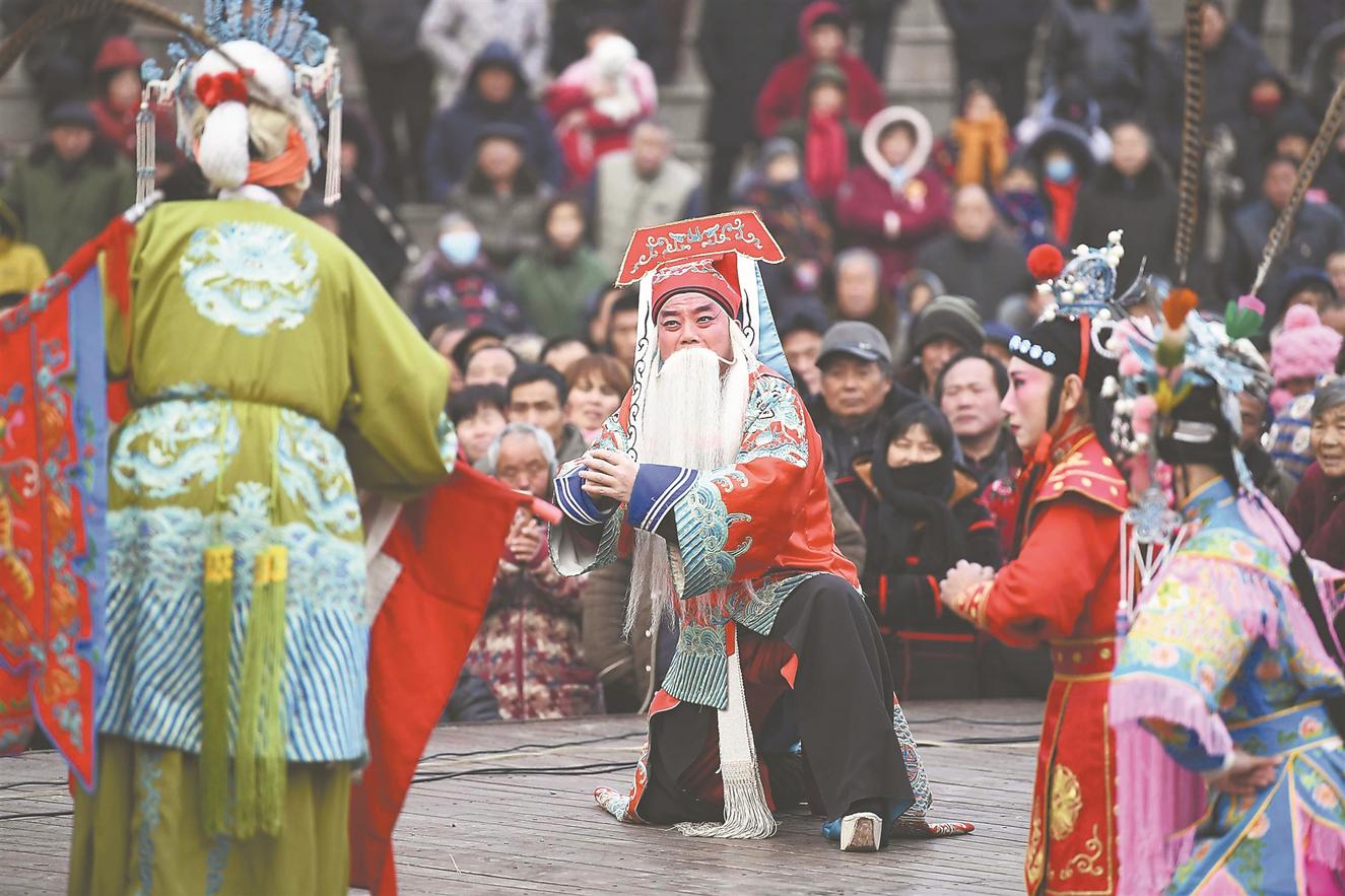 2月10日,在亳州市魏武廣場天幕劇場,亳州演藝公司的演員在表演梆劇《五世請纓》。春節(jié)期間,亳州市在魏武廣場開展“紅紅火火過大年”精品戲曲展演活動,《穆桂英掛帥》《三拉房》《打金枝》等精品戲曲天天展演。 本報通訊員 劉勤利 戴明 攝