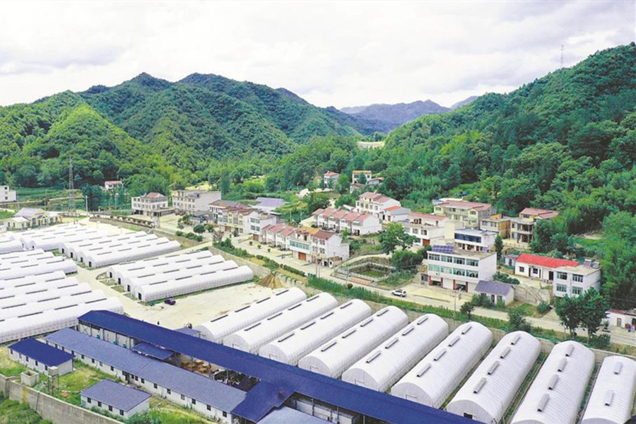 金寨縣關(guān)廟鄉(xiāng)大埠口村秀珍菇種植基地一景。