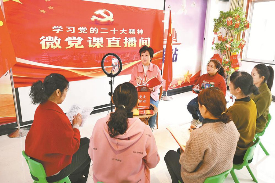11月16日,在社區微黨課直播間里,安慶市大觀區菱湖社區黨委書記袁芳正領著網格長學習黨的二十大精神,并開通社區黨員學習網絡平臺。 安慶市大觀區各鄉鎮、街道基層黨組織以微黨課、微宣講、微視頻等形式開展黨的二十大精神大家講系列活動,推動黨的二十大精神深入人心、落地生根。