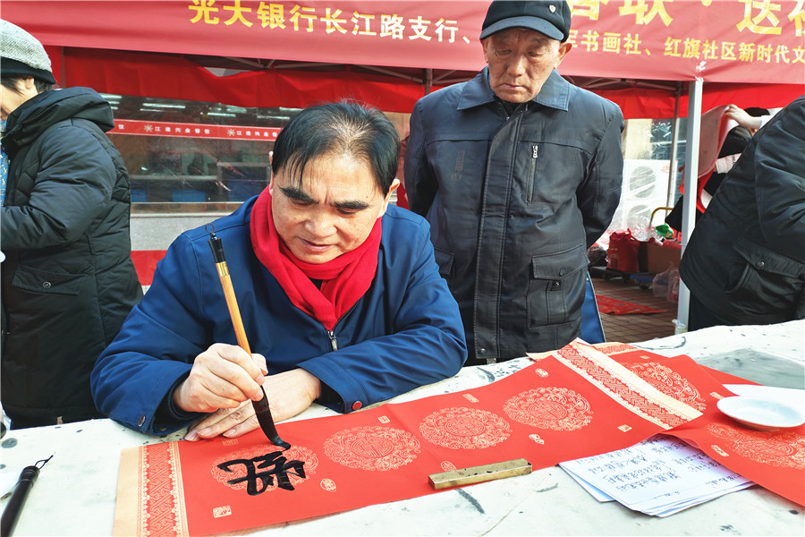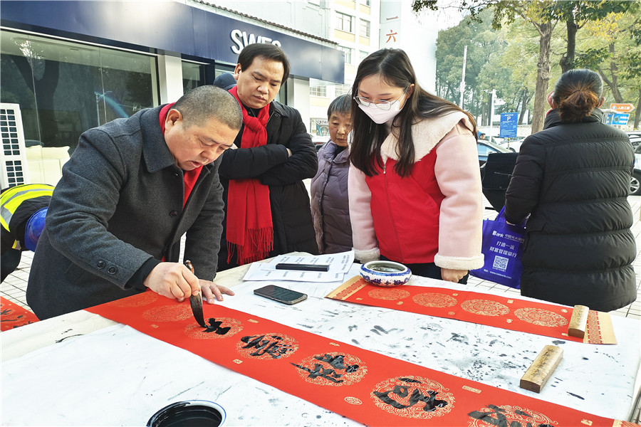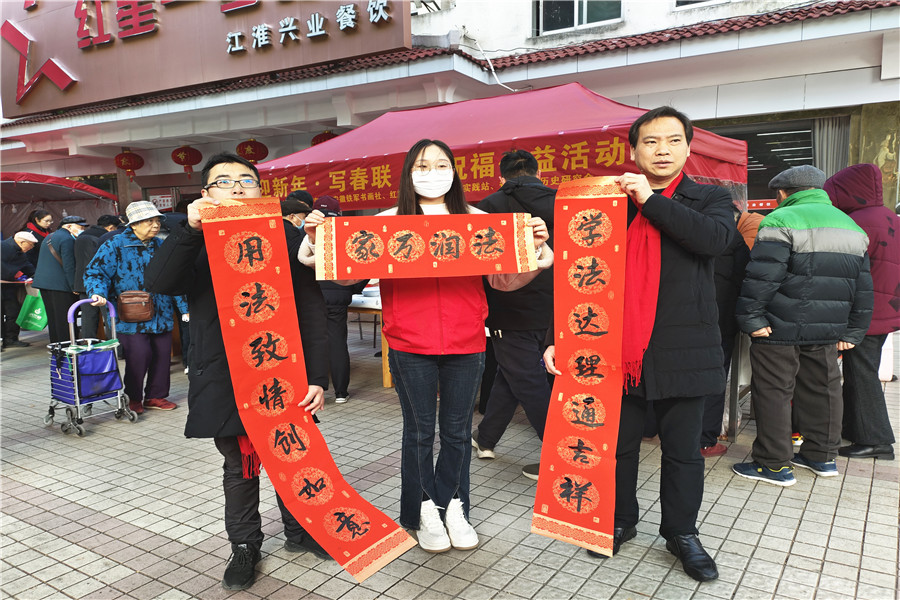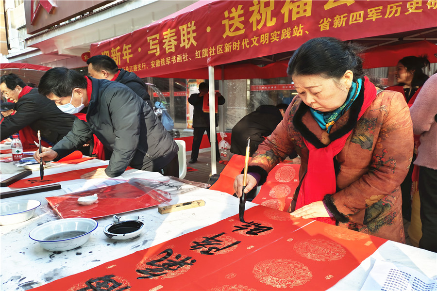 本網(wǎng)訊(記者 史洪芳)1月30日,安徽省新四軍歷史研究會(huì)、紅旗社區(qū)新時(shí)代文明實(shí)踐站、安徽鐵軍書畫社等單位共同舉辦了“迎新年·寫春聯(lián)·送祝福”公益活動(dòng),邀請多位書法家現(xiàn)場寫春聯(lián)、福字,為廣大市民送上新春祝福。