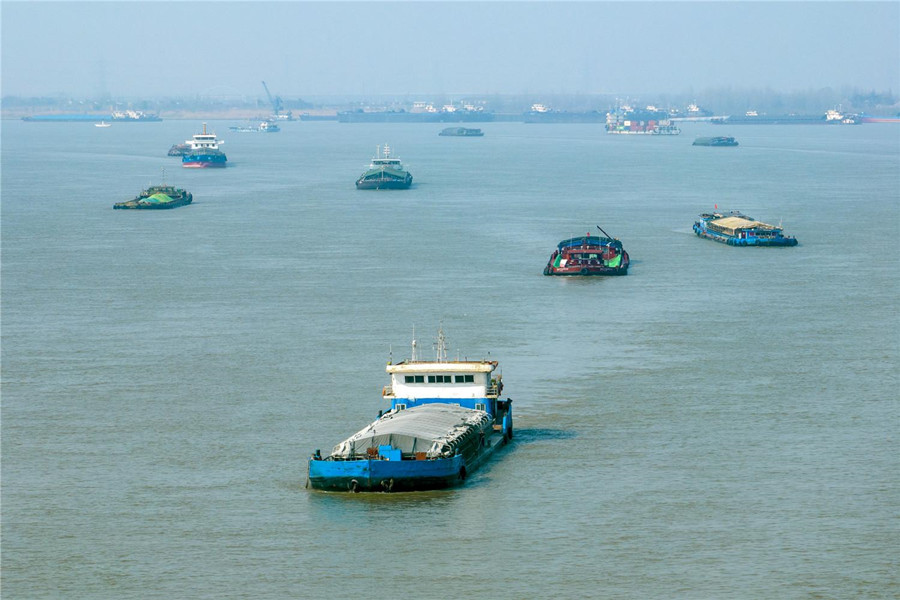 2月27日,在長江蕪湖市繁昌區荻港鎮段水域,裝運著生產和生活物資的貨運船舶往返穿梭。新春伊始,素有“黃金水道”之稱的長江迎來航運繁忙季。