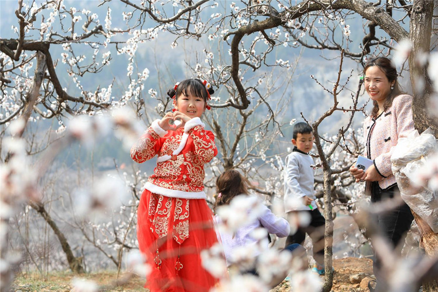 3月16日,淮北市相山區(qū)黃里景區(qū)杏花飄香,吸引市民、游客前來賞花、游玩。