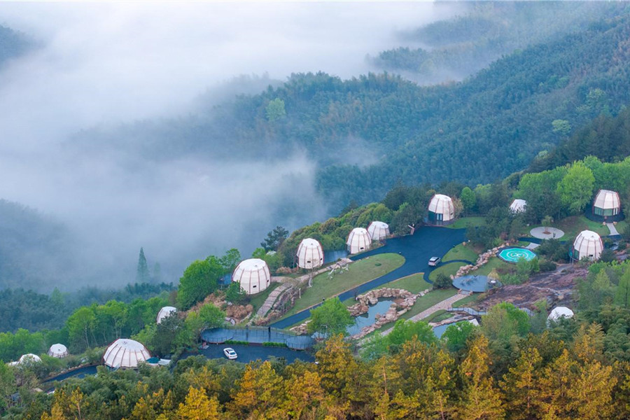 4月10日,云霧繚繞中的廣德市四合鄉金雞嶺,一頂頂帳篷吸引眾多省內外游客前來旅游打卡。近年來,當地對廢棄礦山進行生態修復,發展特色旅游度假產業,打造集田園生活體驗、戶外運動、觀光休閑于一體的休閑度假勝地。