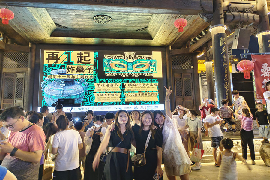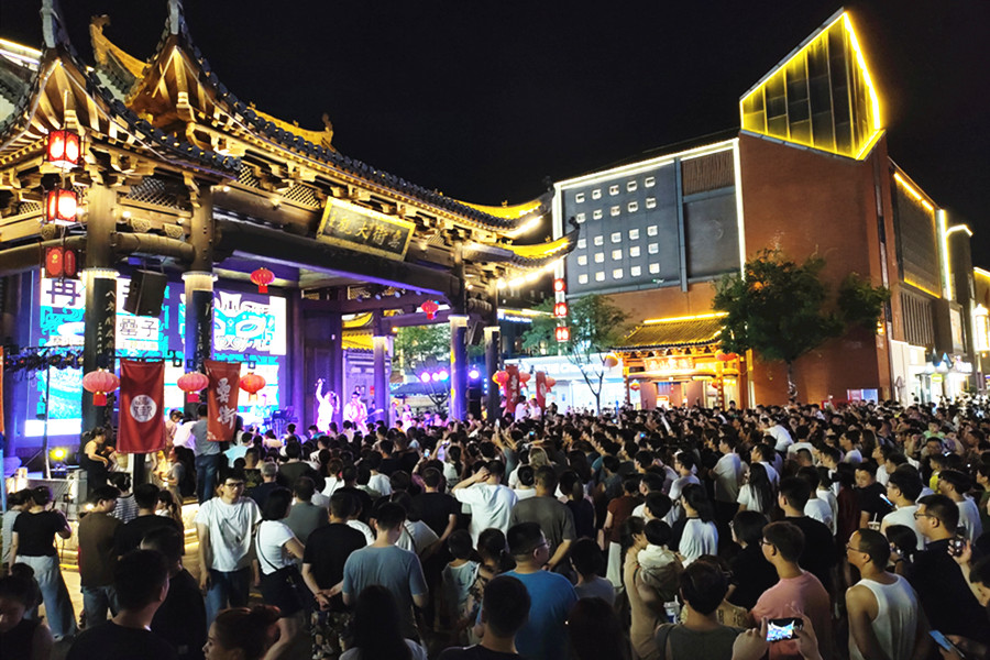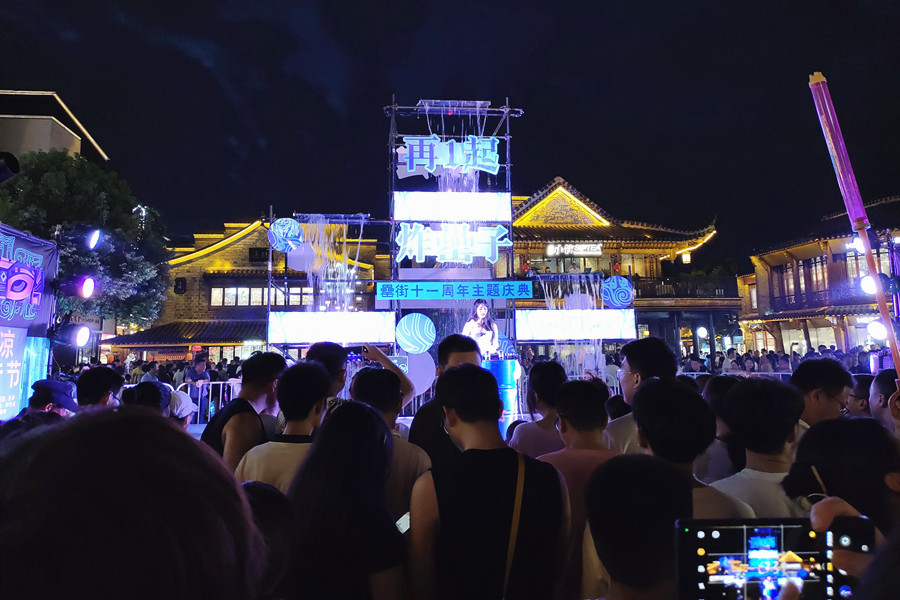 本網訊(記者 史洪芳)炎熱夏季,火熱“夜經濟”點亮了合肥的夜晚。納涼音樂節、青銅朋克主題巡游、全場五折嗨吃……近日,作為合肥夜間經濟的標桿,罍街舉行了十一周年主題慶典,吸引了廣大市民和游客前往游玩體驗。活動現場熙熙攘攘,大家或在小吃攤前排起長隊,或跟隨著音樂舞動,或觀賞主題巡游,升騰起滿滿的人間煙火氣,熱鬧非凡。
