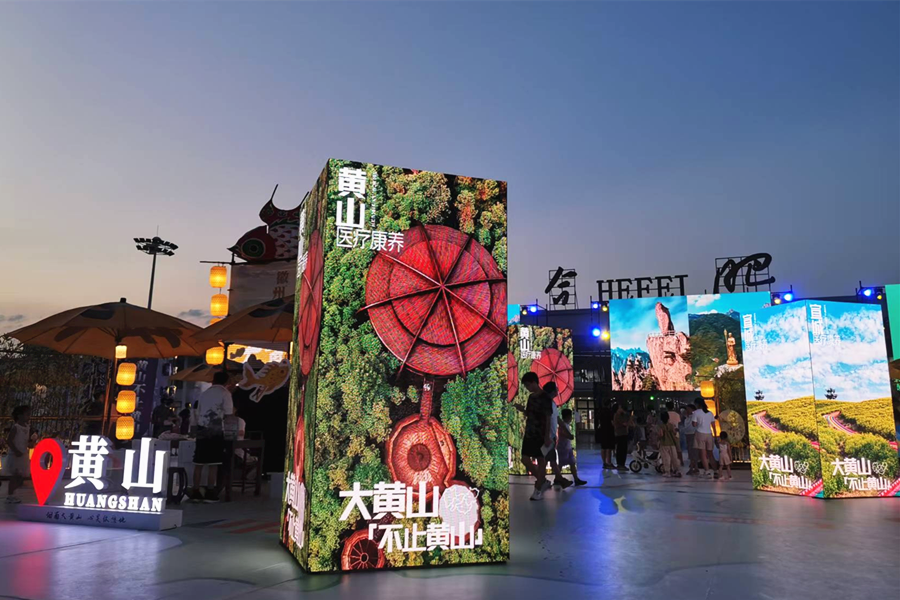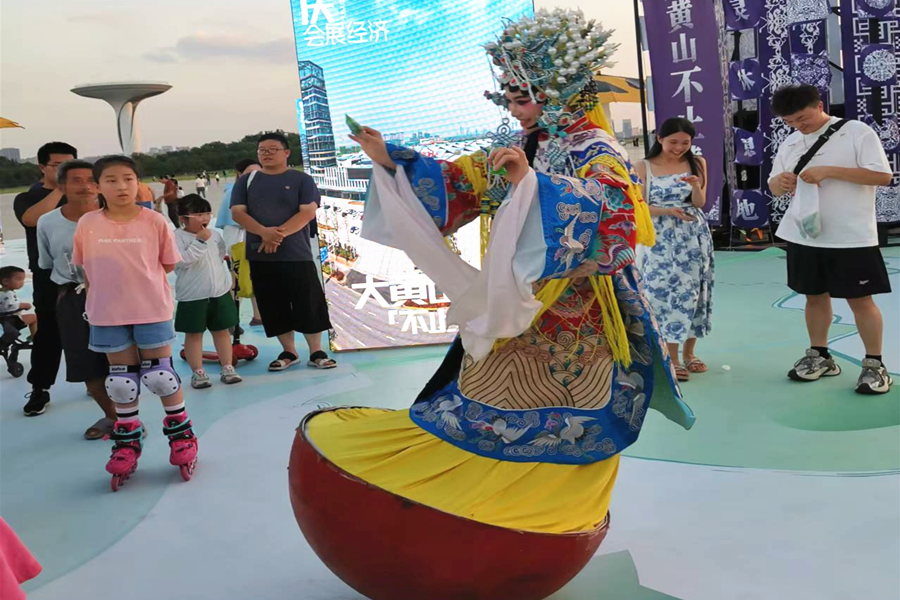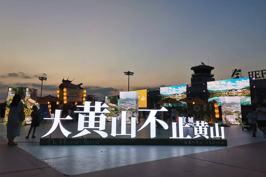 活動現場以大黃山為核心,通過沉浸式文化活動,展示了大黃山獨特的自然景觀與深厚的文化底蘊,觀眾們也體驗了徽州魚燈、宣紙扇等不同的非遺項目,感受大黃山的風土人情。
