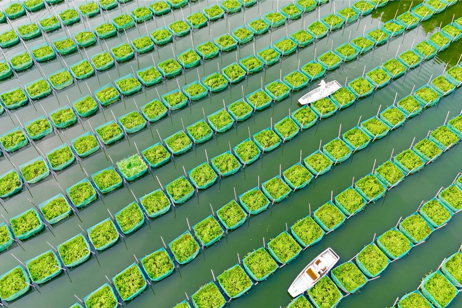 8月26日,在懷寧縣石牌鎮保湖村黃鱔養殖基地,村民打撈黃鱔,準備上市銷售。保湖村黃鱔養殖面積960畝,年產值近億元,有力帶動了村級集體經濟發展和群眾增收。