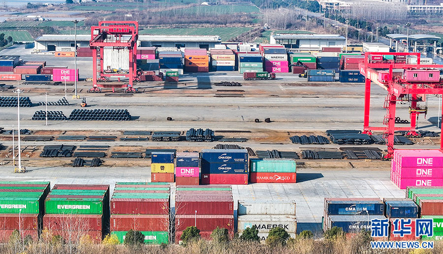 新年伊始,在安徽馬鞍山市鄭蒲港新區港口碼頭,一派繁忙景象,全力沖刺新年“開門紅”(1月2日攝)。