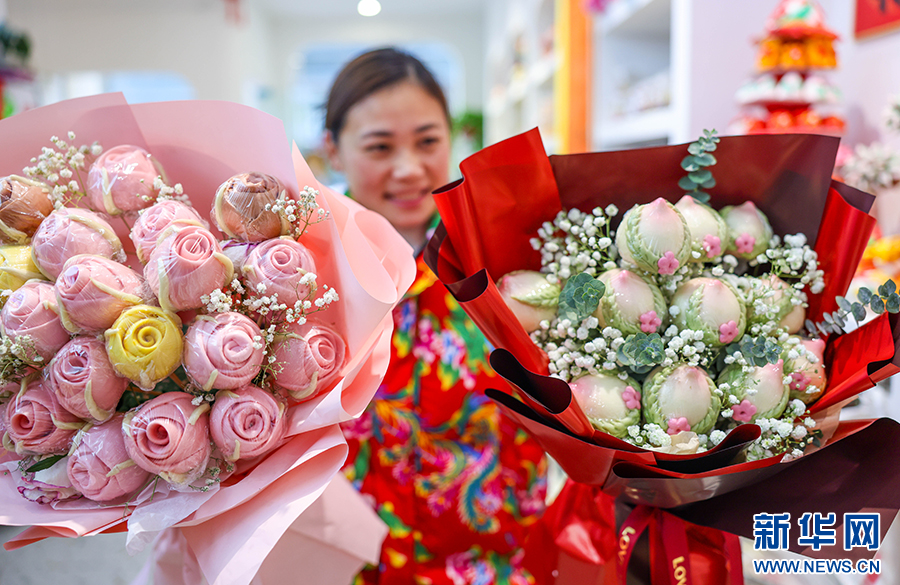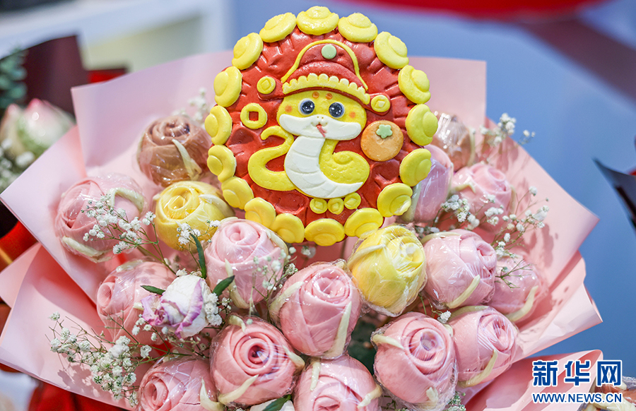隨著農歷蛇年臨近,安徽省淮北市濉溪縣花饃非遺傳承人郭鈺加緊趕制“生肖蛇”“鯉魚”“花束”等富有美好寓意的花饃,供應節日市場,為即將到來的蛇年增添了濃濃的喜慶氣氛。新華網發(王文 攝)
