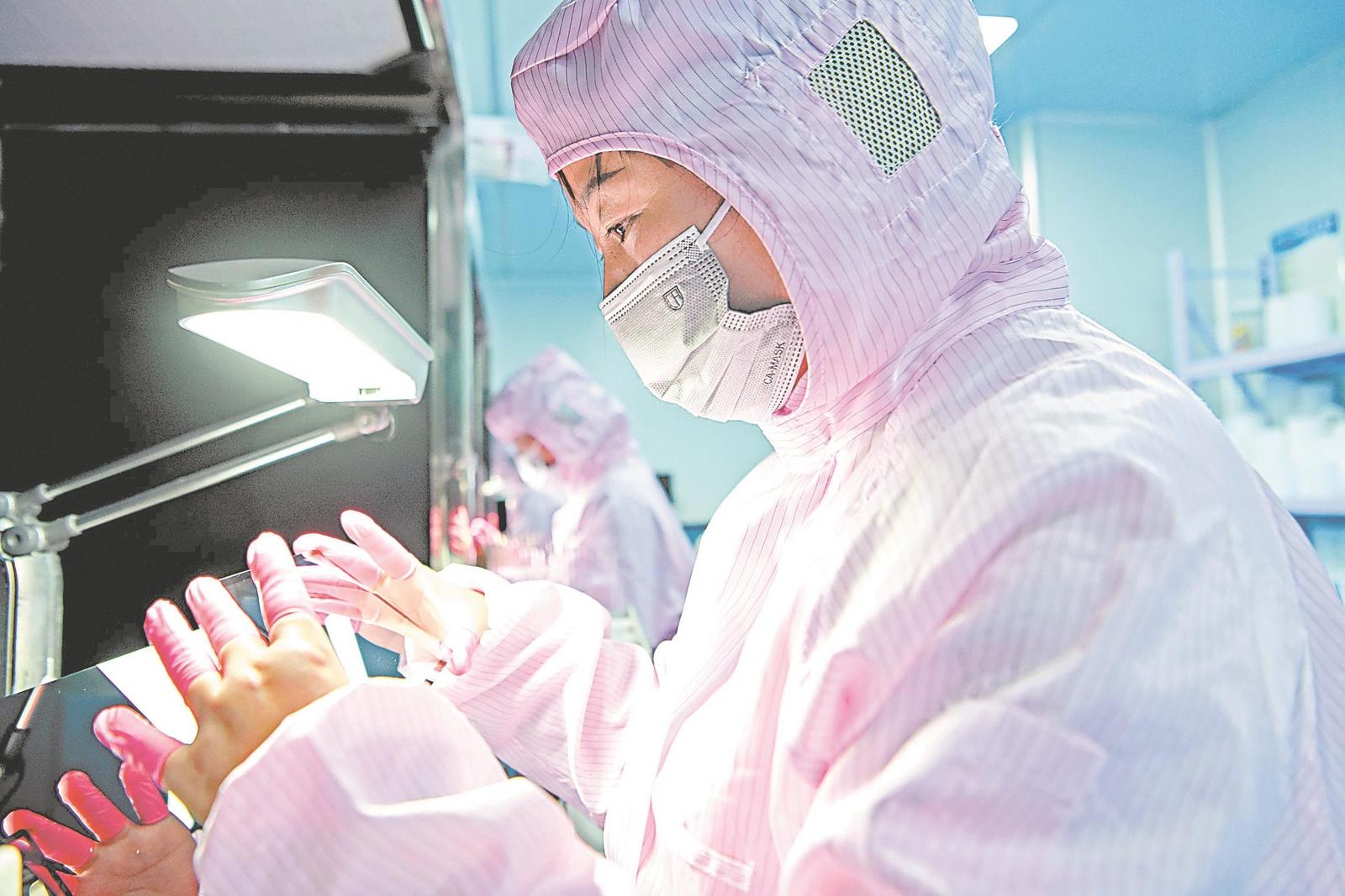 2月5日,位于淮南市高新區的安徽晶橋光電科技有限公司內,工人在檢測顯示屏。通訊員 陳彬 攝
