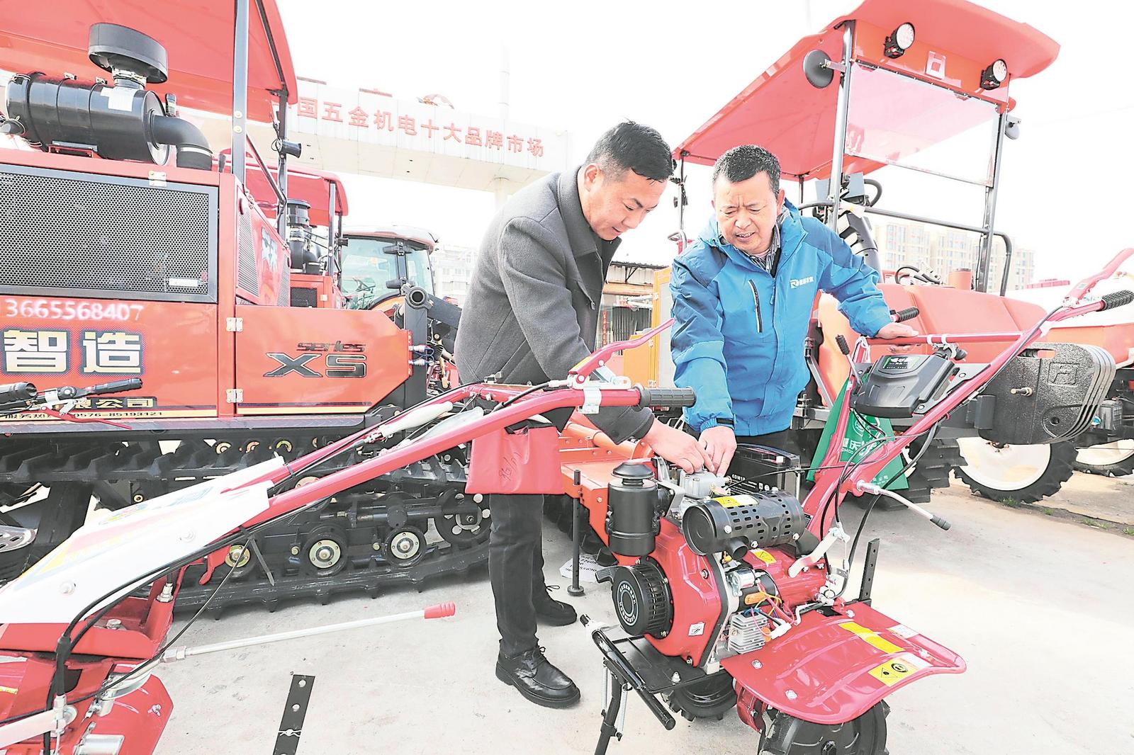 2月6日,在安慶市宜秀區農機銷售市場,農民正在選購農機設備。通訊員 江勝 攝
