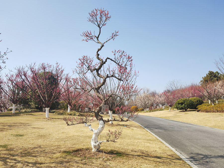 2月18日,天朗氣清,陽光明媚。合肥園博園安徽園內的梅花次第綻放,春意漸濃。(