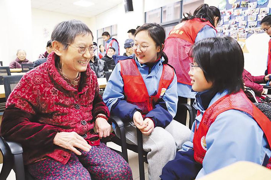 3月3日,合肥市第三十八中學(xué)北校組織黨團(tuán)志愿者來到“養(yǎng)親里敬老院”,陪老人度過一段愉快時(shí)光。通訊員 聞超 攝