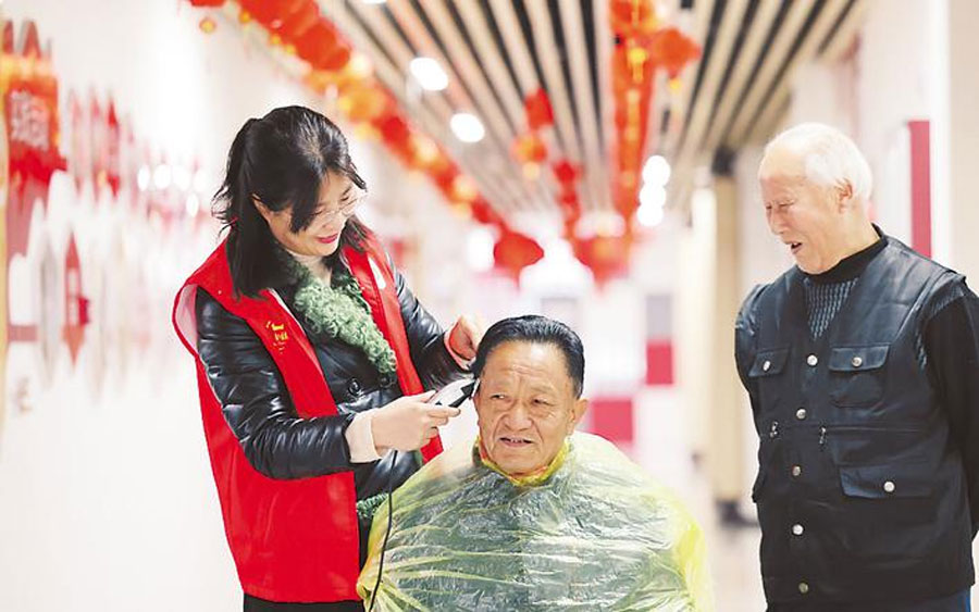 3月5日,肥東縣長(zhǎng)臨河鎮(zhèn)新時(shí)代文明實(shí)踐所,志愿者為轄區(qū)老人義務(wù)理發(fā)。 通訊員 陳振 攝