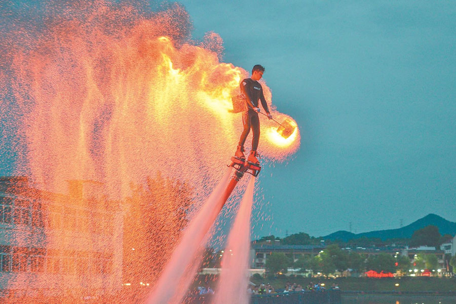 6月20日晚,在銅陵市郊區大通鎮,水上火壺、魚燈巡游、水上龍燈等精彩的非遺表演吸引了眾多游客參觀體驗。通訊員 儲著傳 攝