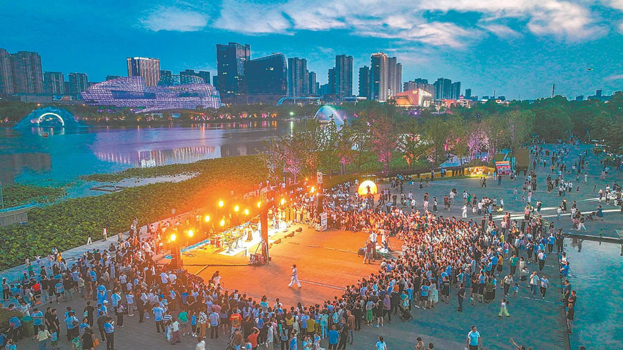 6月22日傍晚,阜陽市雙清灣公園人氣爆棚,“樂享清河”便民集市與“一城暖陽”城市音樂會同步啟幕,為市民打造夏日休閑新體驗。通訊員 龐誠 攝