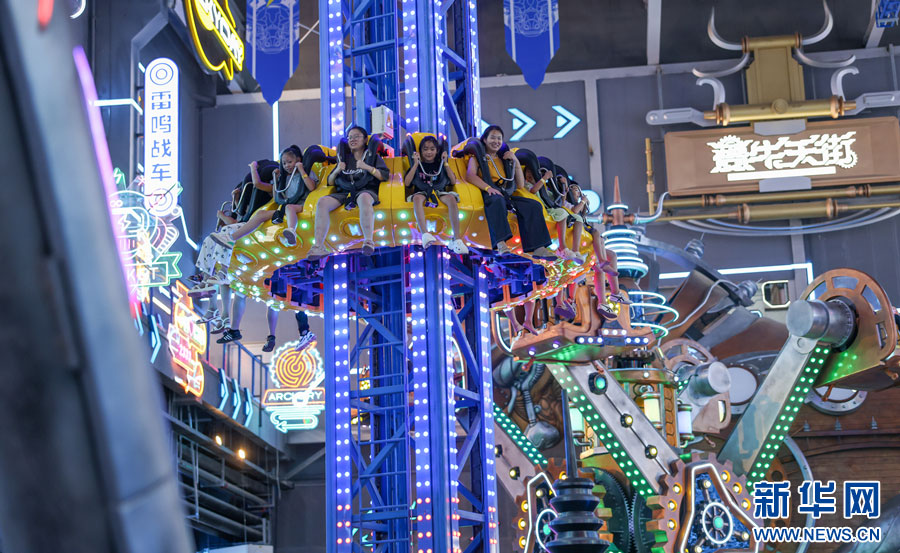 游客在夔牛天街體驗游樂項目。新華網(wǎng)發(fā)(王文 攝)