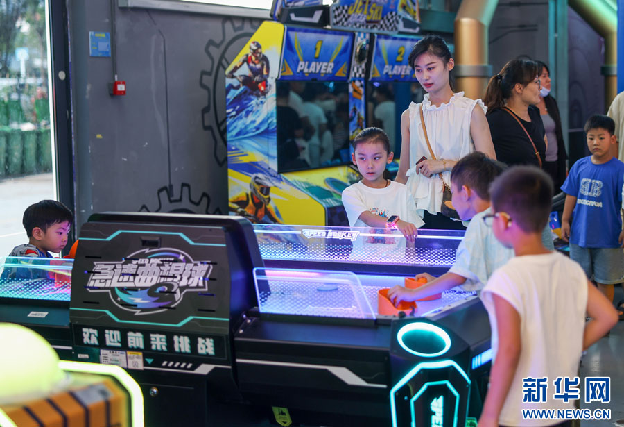 ??近日,在安徽省淮北市相山區(qū)夔牛天街,眾多家長趁暑期帶著孩子前來游玩。