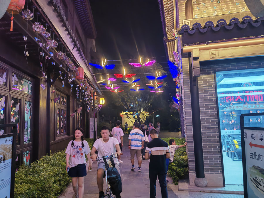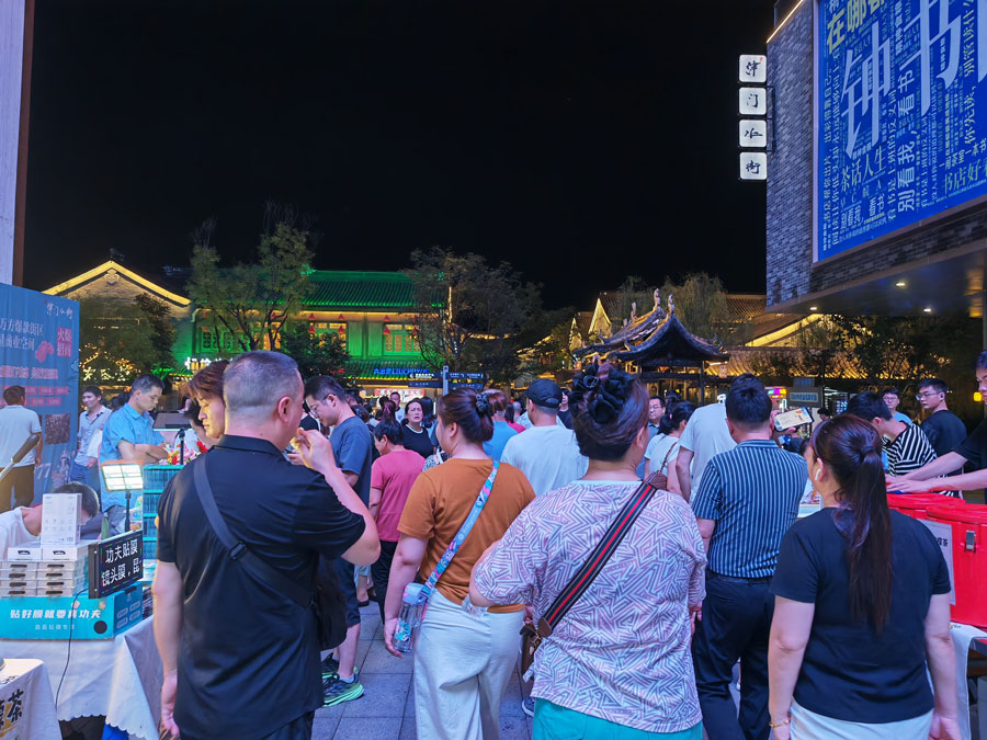 8月23日傍晚,華燈初上,霓虹閃爍,古色古香的塘溪津門水街游人如織。以宋式文化為底蘊的津門水街,不僅匯集各色美食,還有各類國風文創小鋪。夜幕降臨,美輪美奐的水光交融表演更是吸引大量游客來此打卡消費。“夜經濟”不僅點亮了城市的夜色,也在不斷激發消費新活力。(賀鵬云)