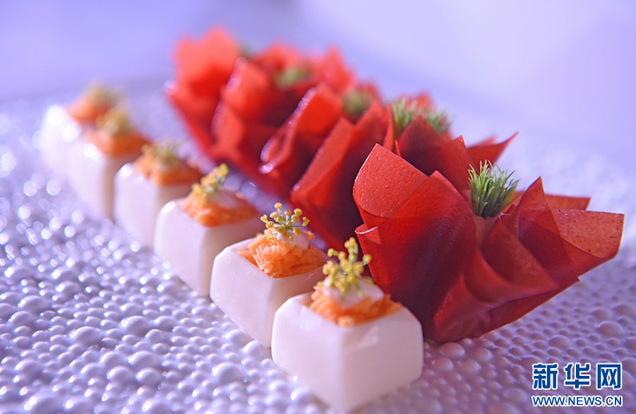 9月14日,安徽“超級皖”美食爭霸賽淮南城市戰隊選拔賽現場展示的豆腐菜。