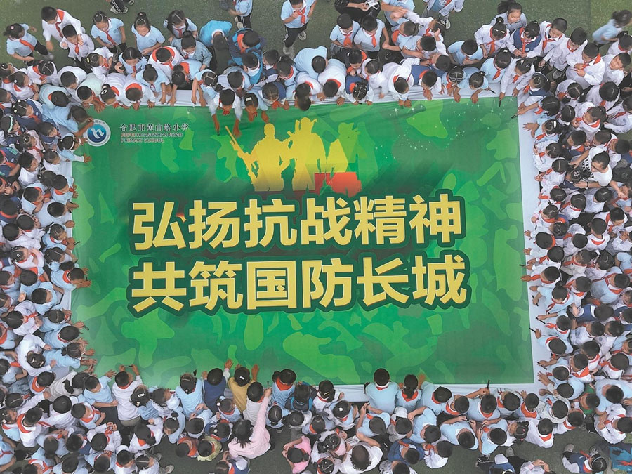 9月18日,合肥市黃山路小學(xué)學(xué)生在國防主題畫布上簽名。當(dāng)天,該校開展“弘揚(yáng)抗戰(zhàn)精神 共筑國防長城”國防教育進(jìn)校園活動,引導(dǎo)學(xué)生樹立國防觀念,厚植愛國主義情懷。通訊員 葛宜年 攝