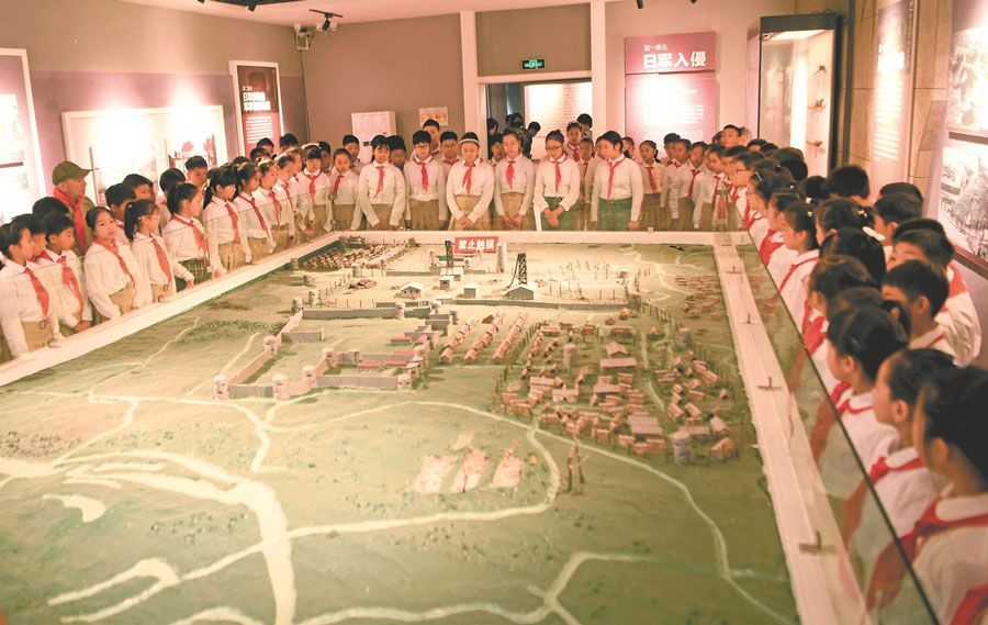 9月18日,淮南師范附屬小學(xué)學(xué)生走進(jìn)大通萬人坑教育館參觀日軍侵占淮南煤礦罪證陳列展。特約攝影 陳彬 攝