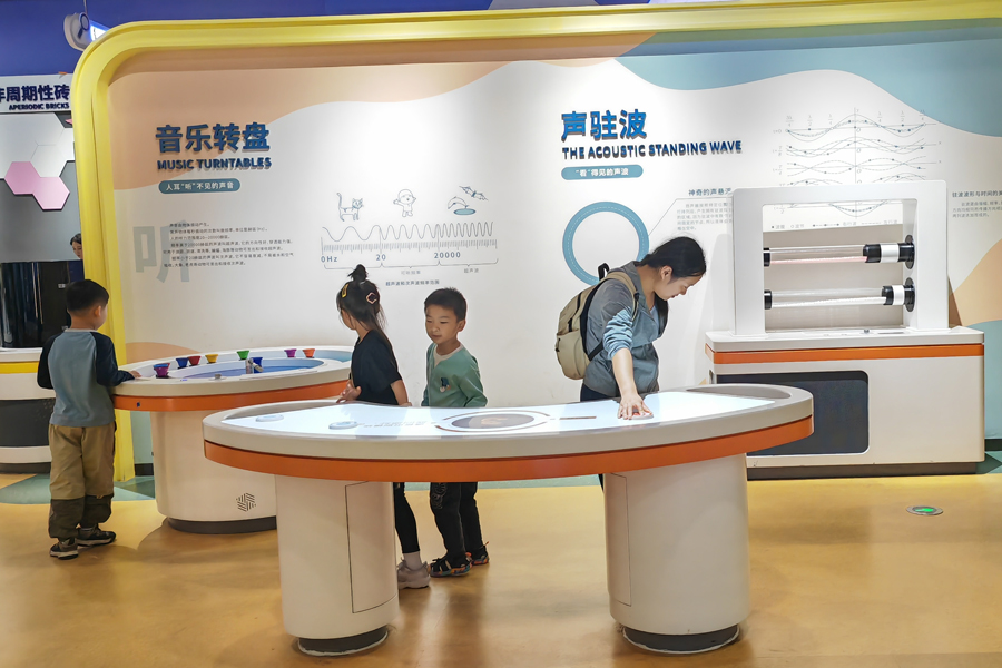 10月12日,位于巢湖岸邊的安徽省科技館內(nèi)參觀者眾多。省科技館展覽教育區(qū)設(shè)置科技強(qiáng)國、科學(xué)征程、減碳之路、童趣樂園、健康之本、天地探秘、量子探微、數(shù)字探夢、科創(chuàng)探趣等9個(gè)常設(shè)主題展廳、1個(gè)科學(xué)秀場、1個(gè)臨時(shí)展廳以及巨幕影院、球幕影院、4D影院等3個(gè)特效影院,擁有豐富的科教資源。孩子們在這里不僅可以近距離感受科技魅力,還能點(diǎn)燃科學(xué)夢想。(賀鵬云)