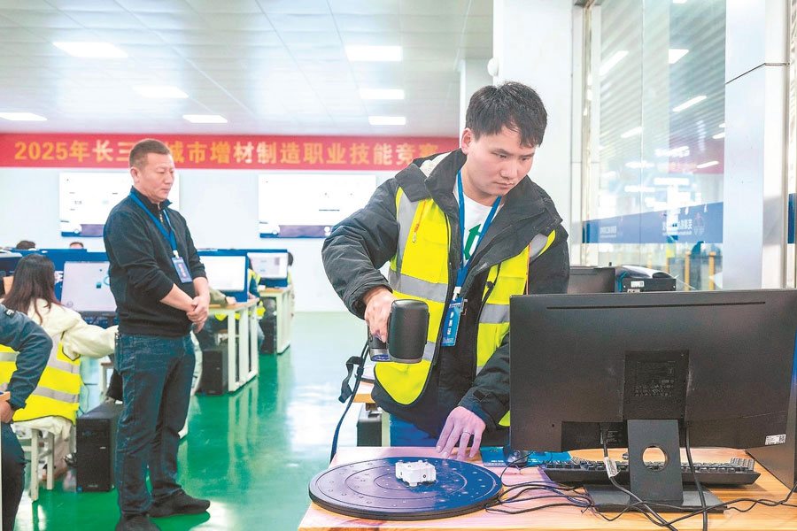 11月1日,蕪湖市繁昌區(qū)蕪湖機(jī)械工程學(xué)校,選手在參加長(zhǎng)三角城市增材制造職業(yè)技能競(jìng)賽。賽事聚焦增材制造實(shí)操技能,來(lái)自安徽、江蘇、浙江和上海三省一市的21支代表隊(duì)70余名選手參賽。本報(bào)通訊員 肖本祥 攝