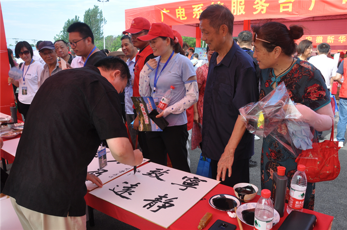 省市“三下鄉(xiāng)”活動領(lǐng)導(dǎo)小組成員單位除提供款物支持外,還組織專家現(xiàn)場服務(wù),為群眾送上豐盛的精神文化科技大餐,為群眾提供醫(yī)療衛(wèi)生服務(wù)和健康知識咨詢,書法家揮毫送墨寶,畫家現(xiàn)場為群眾畫像??萍即笈褴嚽?,互動式科普展品吸引孩子駐足體驗(yàn)。醫(yī)療服務(wù)義診團(tuán)隊(duì)為居民測量血壓、診斷病情,耐心細(xì)致回答各種健康問題。非遺展示、農(nóng)業(yè)知識指導(dǎo)、法律咨詢、小康生活農(nóng)民畫展等受到歡迎。廣場上,精彩的文藝演出贏得群眾陣陣熱烈掌聲。