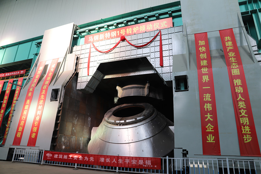 寶武馬鋼集團新特鋼項目建設現場一片忙碌嘈雜景象,緩慢轉動著的巨大爐體上方正掛著“馬鋼新特鋼1號轉爐傾動儀式”紅色條幅,該項目是為著力把馬鋼打造成為中國寶武優特鋼精品基地而實施的重大技改工程項目。寶武馬鋼特鋼公司副經理、總工程師龔志翔告訴記者,該項目計劃總投資92.69億元,分兩期實施,一期工程計劃于2023年6月底前投產。該項目設計年產鋼320萬噸,鋼坯315萬噸,其中中棒100萬噸,線材及大盤卷115萬噸。產品重點瞄準軸承鋼、齒輪鋼、彈簧鋼、非調質鋼、合金冷鐓鋼等中高端產品市場。“項目建成后,年產鋼將達320萬噸,加上年產120萬噸的電爐生產線,將實現440萬噸馬鋼特鋼總體產能,屆時馬鋼優特鋼國內市場占有率將從3%提升至12%。”