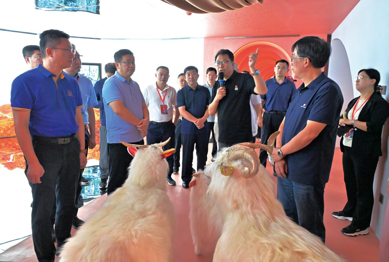 赤峰東黎羊絨股份有限公司負責人向采訪團介紹企業發展情況。張耀東/攝